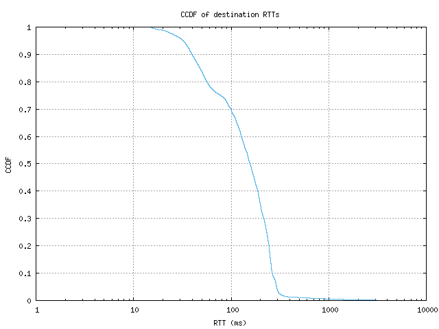 CCDF of destination RTTs