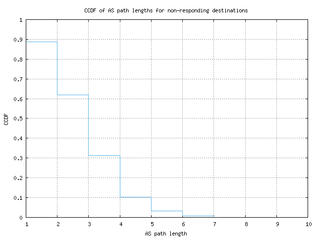Because most AS path lengths fall within a relatively short range, the CCDF