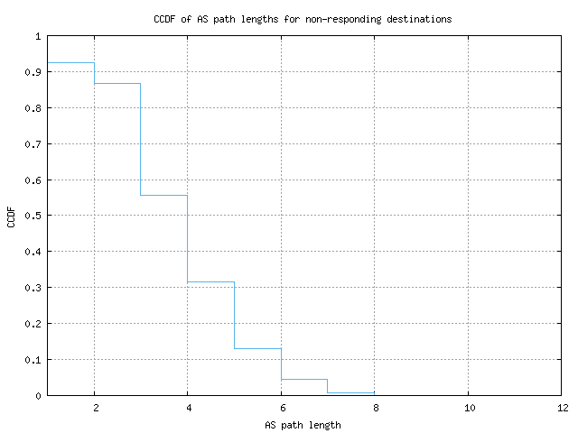 CCDF of AS path lengths for non-responding destinations