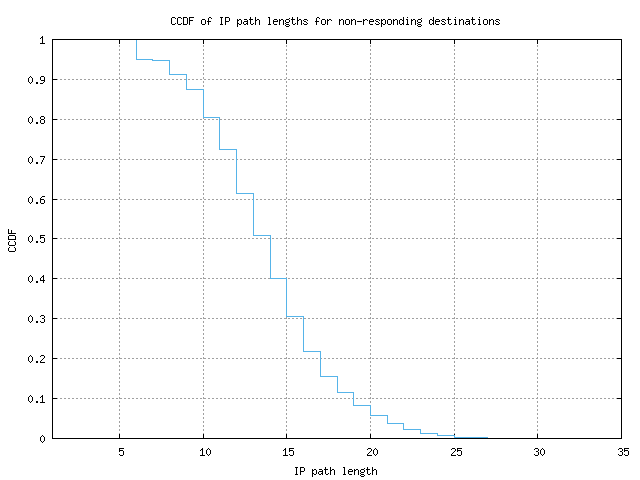 CCDF of IP path lengths for non-responding destinations