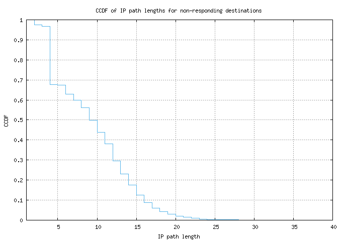 CCDF of IP path lengths for non-responding destinations