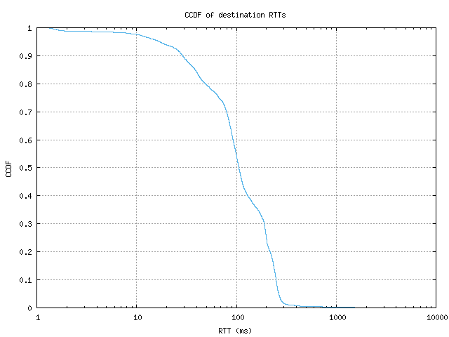 CCDF of destination RTTs