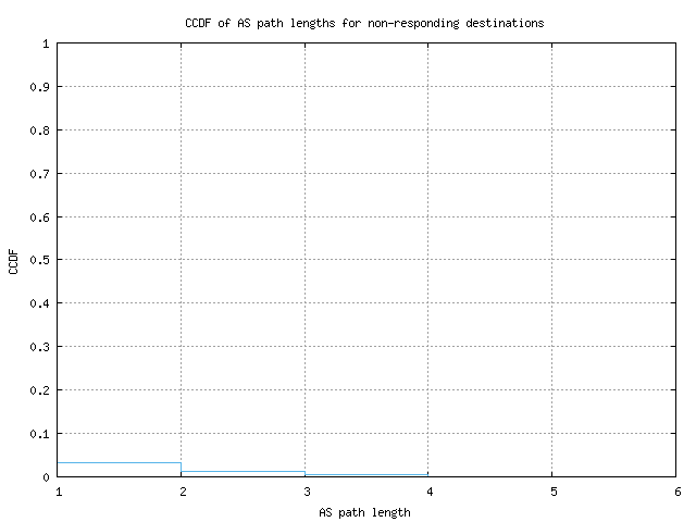 Because most AS path lengths fall within a relatively short range, the CCDF