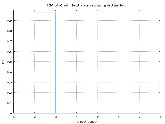 Because most AS path lengths fall within a relatively short range, the CCDF