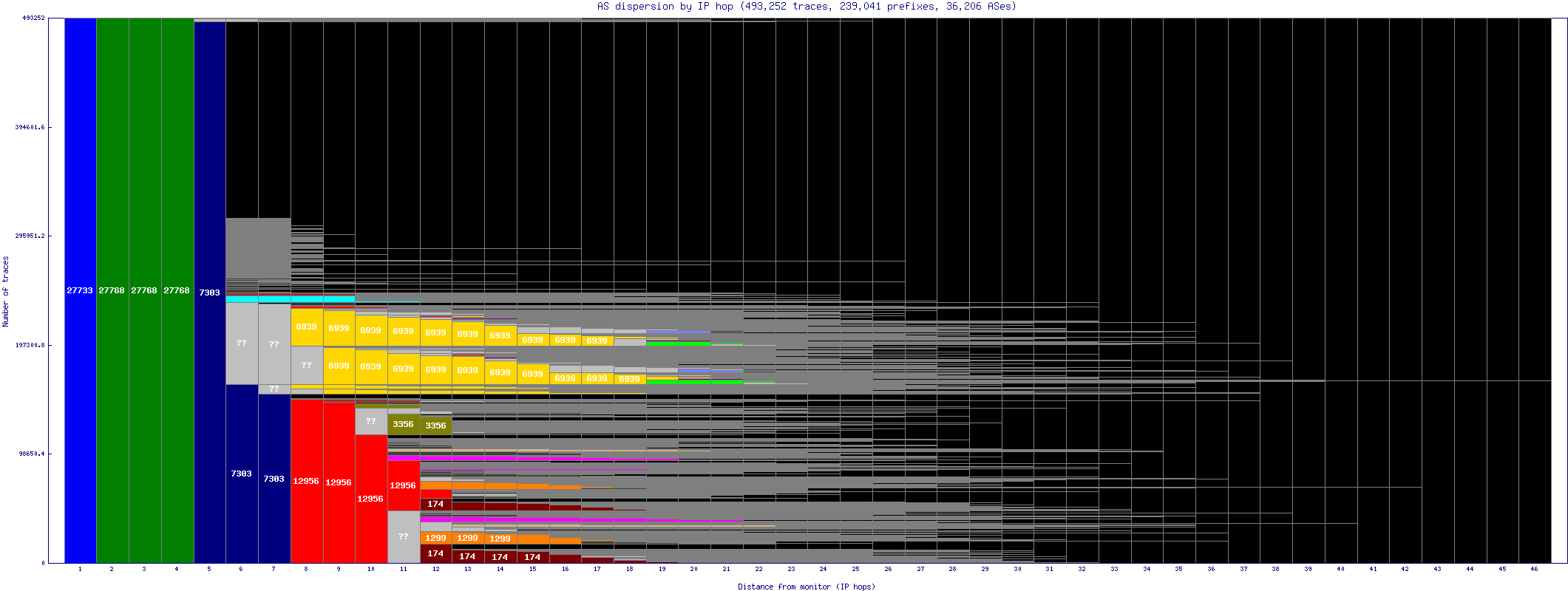 This graph tells you more (compared to the AS Dispersion by AS Hop graph)