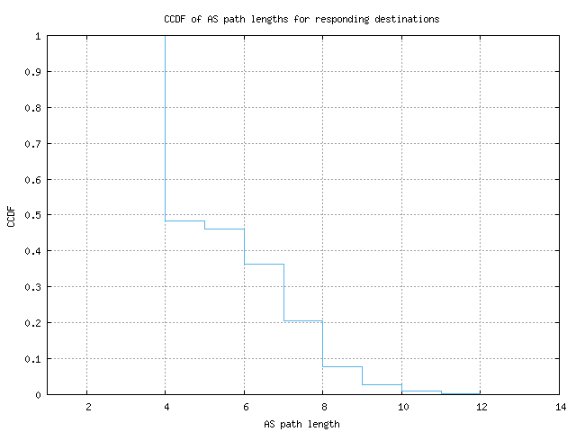 Because most AS path lengths fall within a relatively short range, the CCDF
