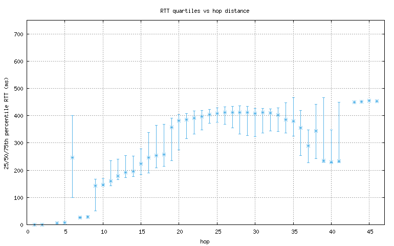 percentiles) of round-trip times (RTTs) found at each hop in a trace. This