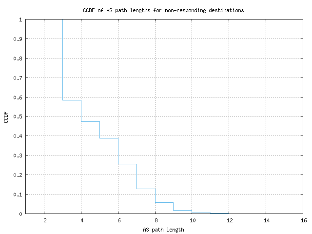CCDF of AS path lengths for non-responding destinations