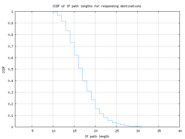 CCDF of IP path lengths for responding destinations