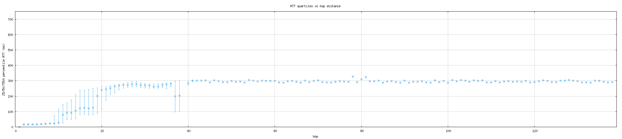 percentiles) of round-trip times (RTTs) found at each hop in a trace. This