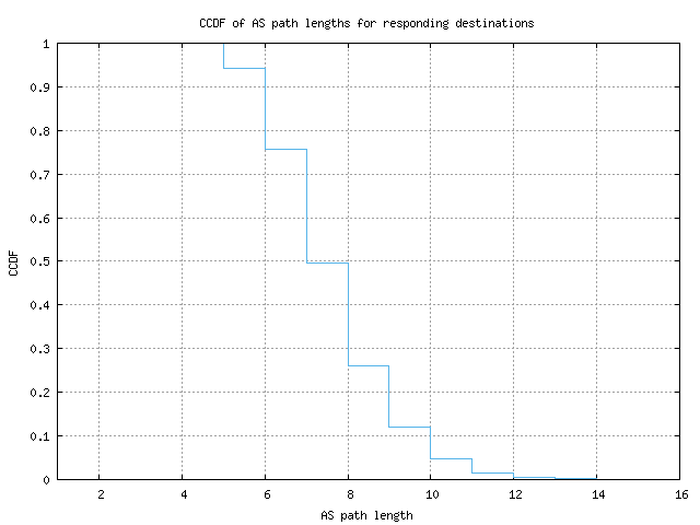 CCDF of AS path lengths for responding destinations