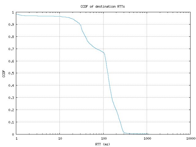 CCDF of destination RTTs