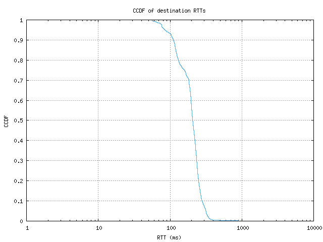 CCDF of destination RTTs