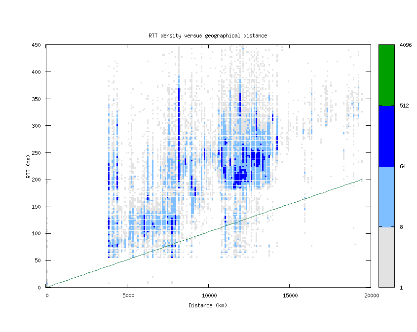 RTT density versus geographical distance