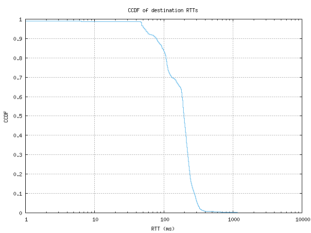 CCDF of destination RTTs