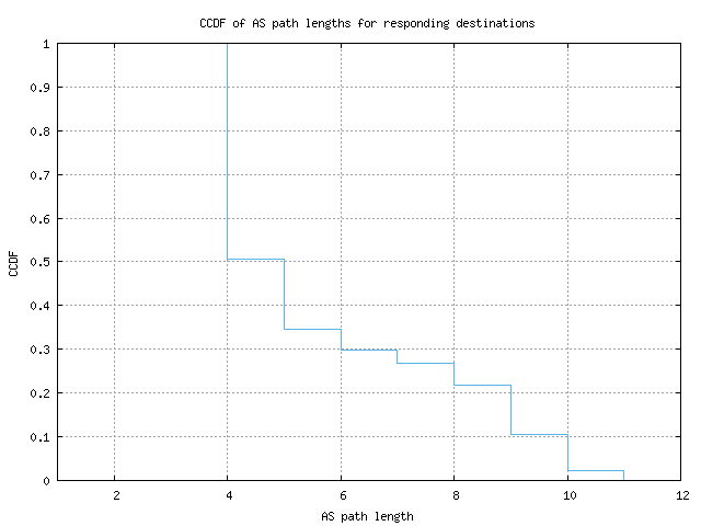 CCDF of AS path lengths for responding destinations