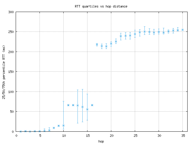 percentiles) of round-trip times (RTTs) found at each hop in a trace. This