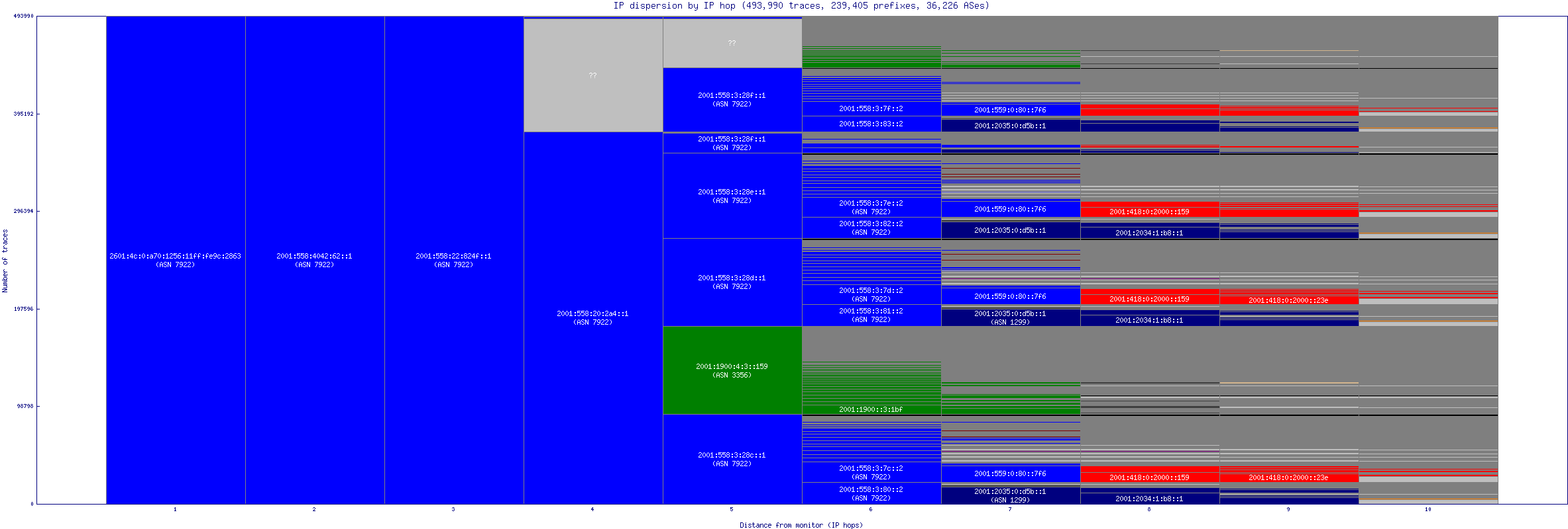 In this graph, we show the IP-level path dispersion, colored and annotated