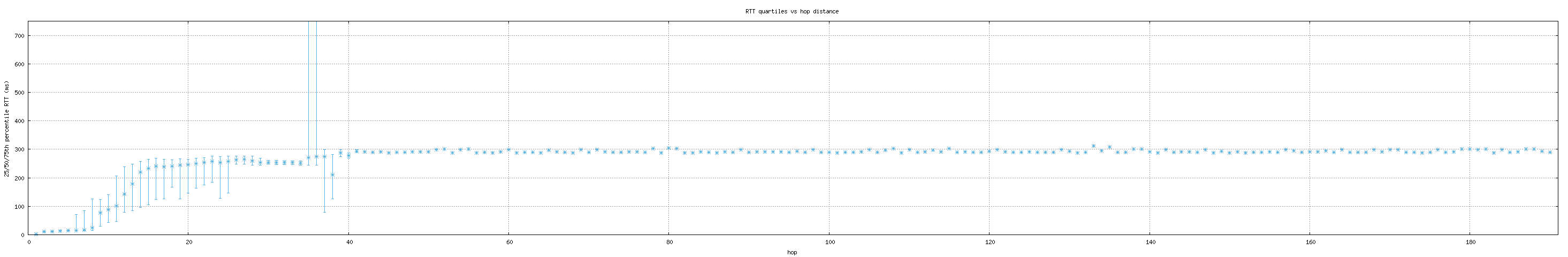 percentiles) of round-trip times (RTTs) found at each hop in a trace. This