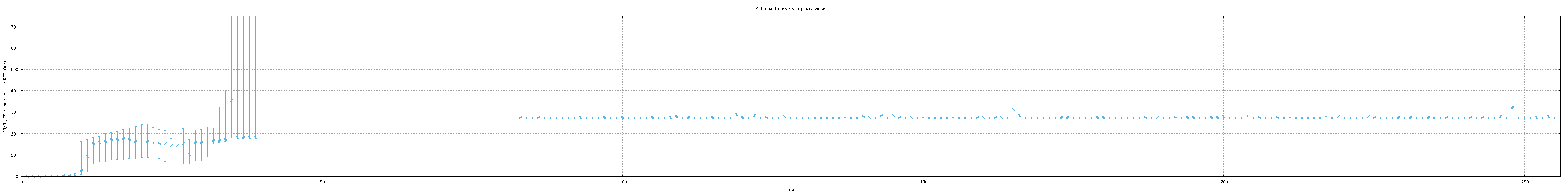 percentiles) of round-trip times (RTTs) found at each hop in a trace. This