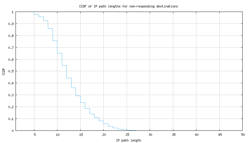 CCDF of IP path lengths for non-responding destinations