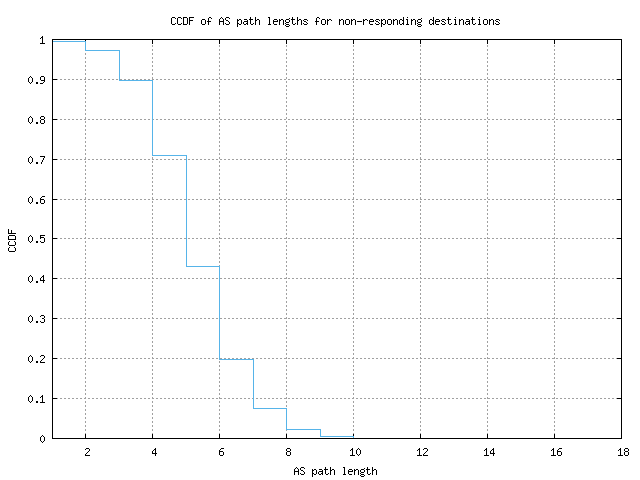 CCDF of AS path lengths for non-responding destinations
