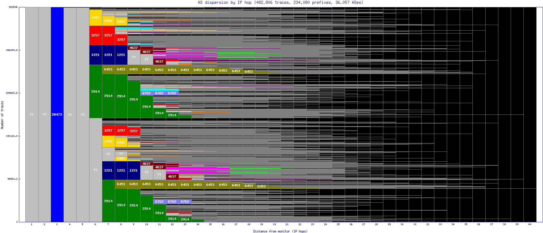 This graph tells you more (compared to the AS Dispersion by AS Hop graph)