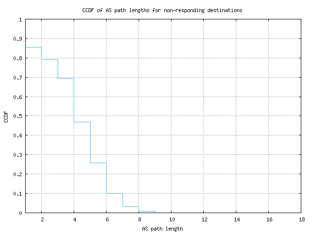 Because most AS path lengths fall within a relatively short range, the CCDF