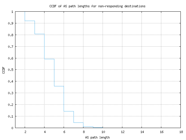 CCDF of AS path lengths for non-responding destinations