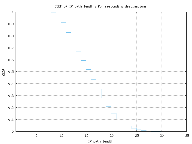 CCDF of IP path lengths for responding destinations