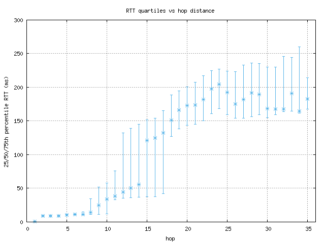 percentiles) of round-trip times (RTTs) found at each hop in a trace. This