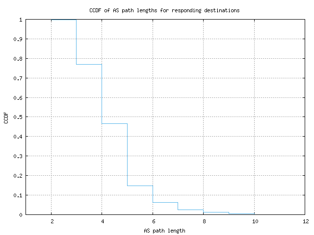 Because most AS path lengths fall within a relatively short range, the CCDF