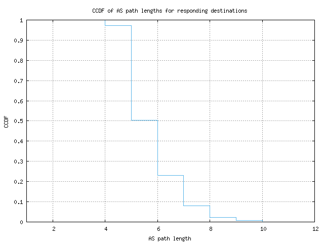 CCDF of AS path lengths for responding destinations