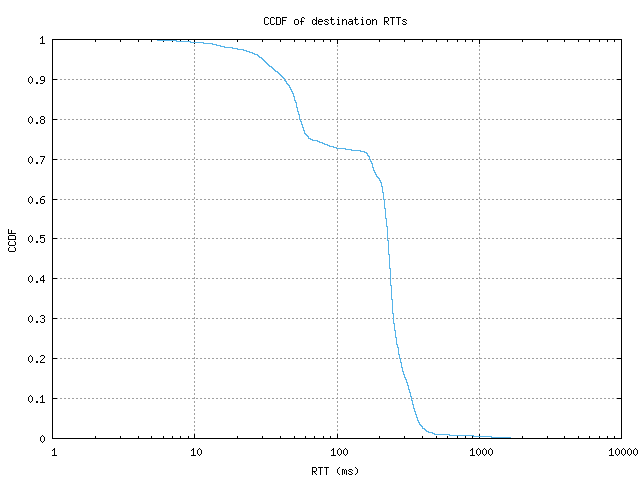 CCDF of destination RTTs