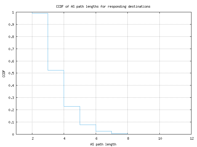 Because most AS path lengths fall within a relatively short range, the CCDF